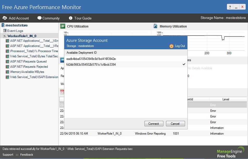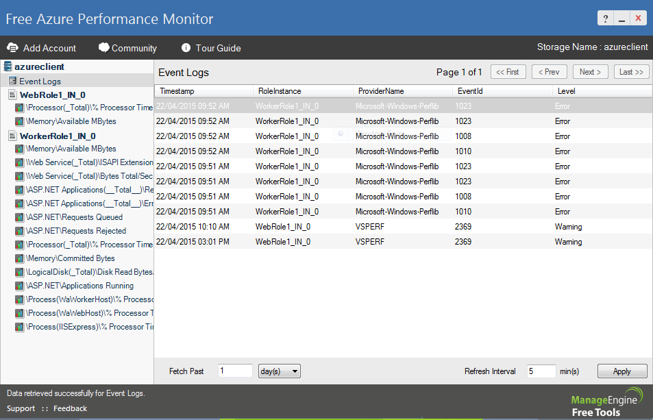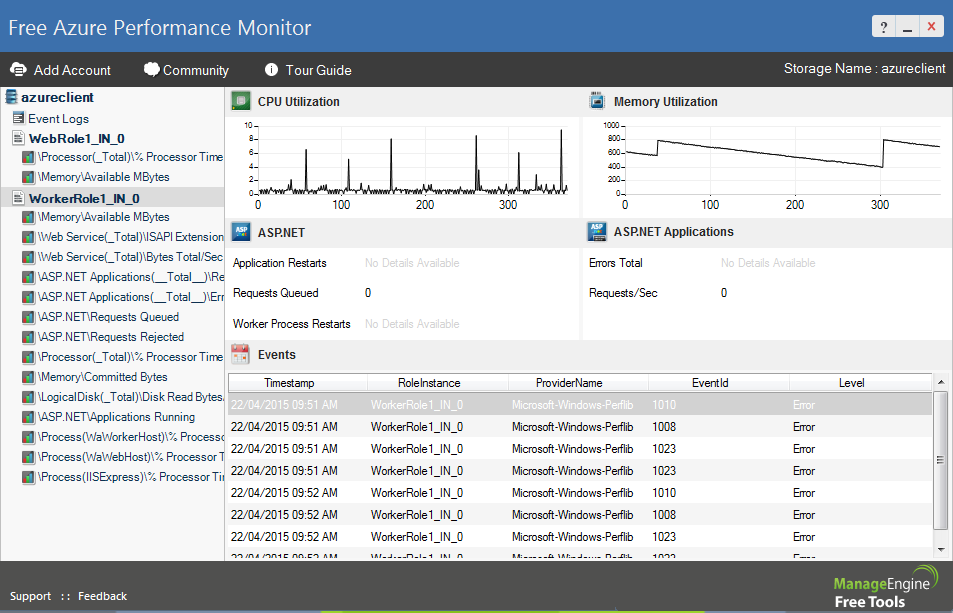 Azure monitoring made easy! This cloud monitoring tool monitors the performance metrics of Cloud Services running on Windows Azure Environment. It monitors the CPU, memory utilization of web and worker roles for any number of instances.