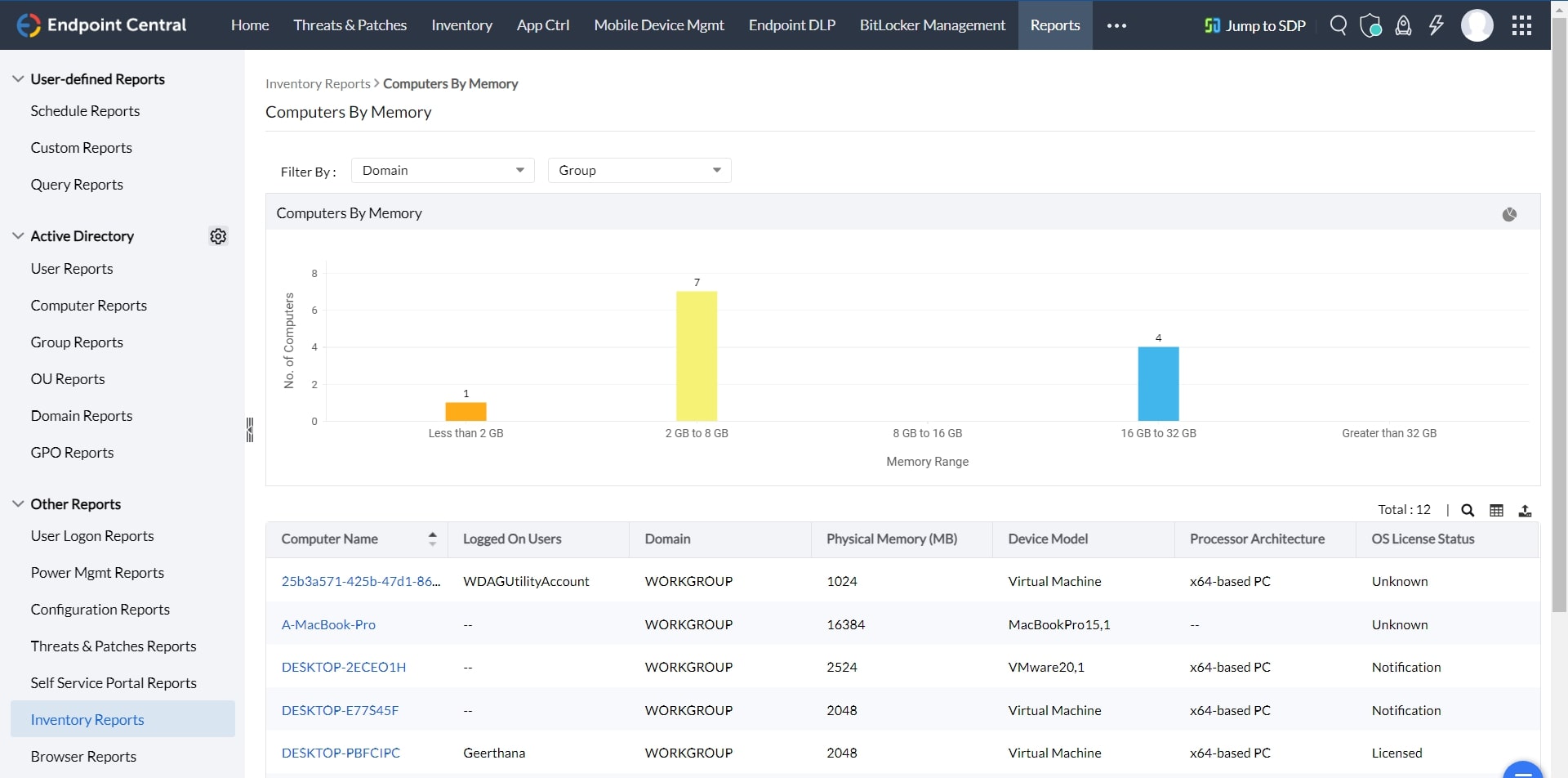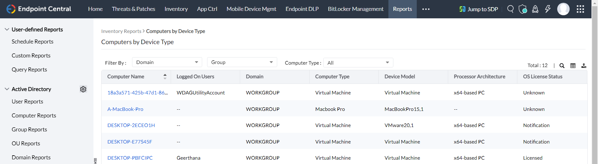 Endpoint Central's hardware inventory tool helps you generate the following reports: