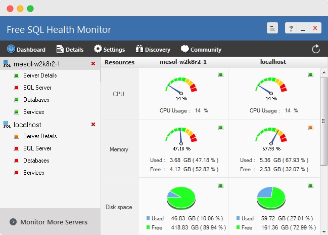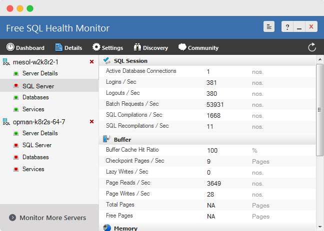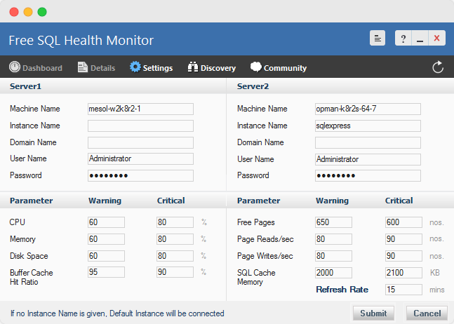 You can monitor up to two SQL servers simultaneously. The tool supports both default and named instances.