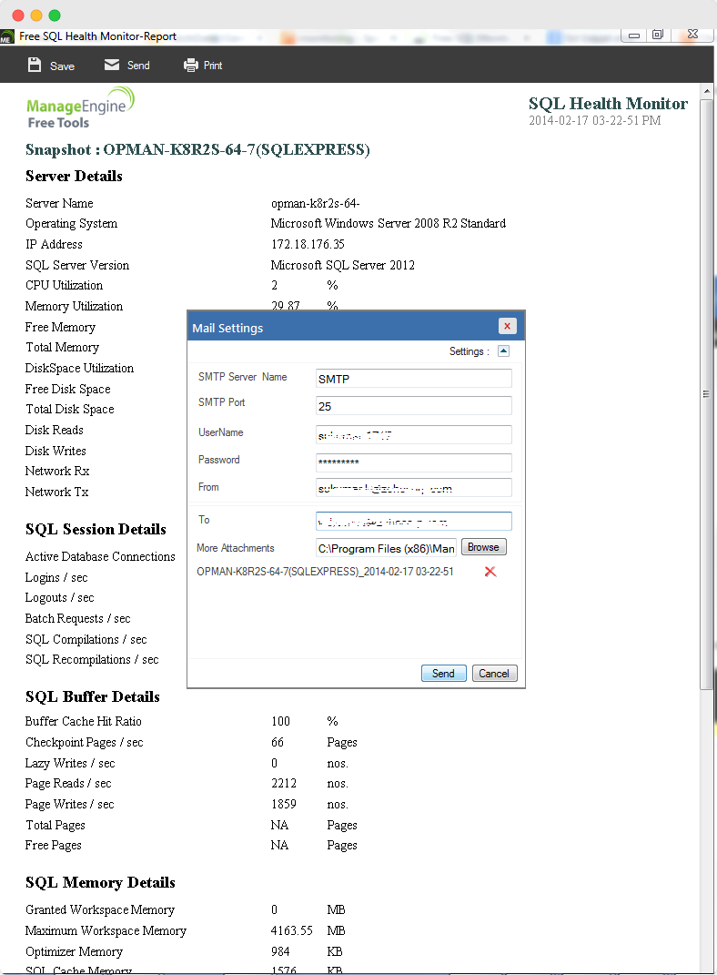 Keep an eye on your SQL Server performance! Database servers are critical to business and need to be highly available. ManageEngine SQL Health Monitoring Tool helps monitor MS SQL servers for performance, availability and monitors all the MS SQL versions including MS SQL 2012 and 2014.