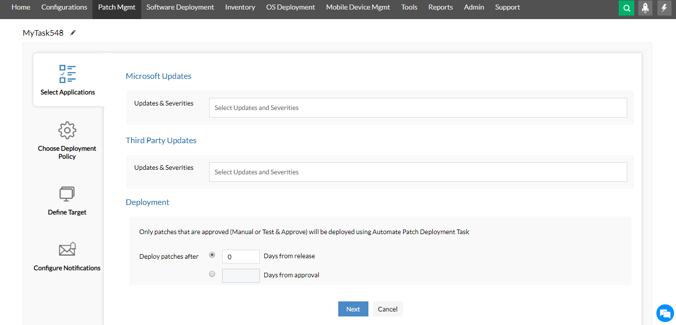 Automation of all the patch deployment levels mentioned above can be specified for a specific set of client systems. You can choose to have different levels of automation for different sets of client systems. The process of deploying patches automatically depends on the level of automation you choose. This Enterprise Patch Management software benefits greatly from automation, ensuring that all computers remain up to date with the latest patch releases from OS and application software vendors.